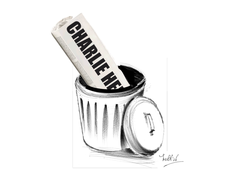Come solo i fumettisti sanno fare bene, alla fine Lulo Tognola affida la sua replica al mezzo che meglio conosce: la vignetta. Nel disegno, il giornale Charlie Hebdo finisce direttamente nella spazzatura. Un gesto che chiude idealmente la polemica.